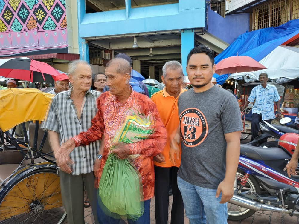 Jejak Asnaf Penarik Beca ; Jingga 13 Terengganu sampaikan sumbangan kepada 25 penarik beca di depan Pasar Kedai Payang , Kuala Terenggnau