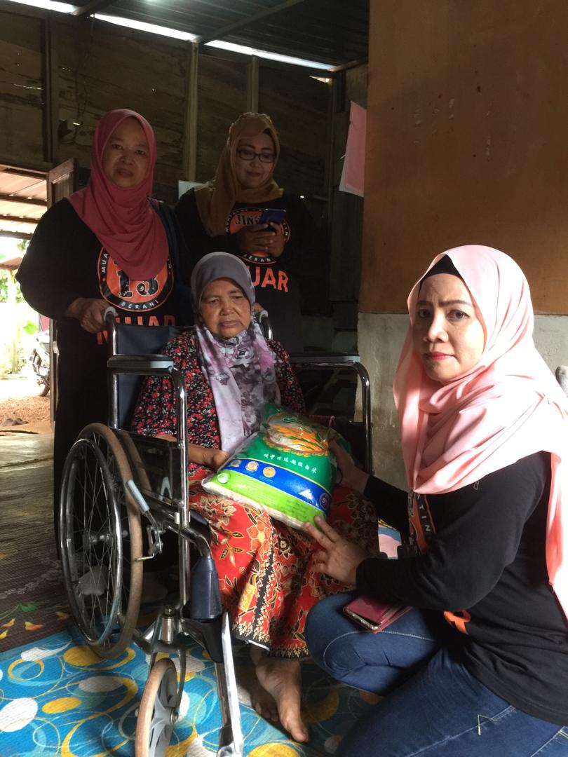 Rumah kedua yang kami susuri untuk memberikan sumbangan ialah rumah Puan Suhada terletak di Parit Penyengat Laut. Seorang ibu tunggal yang OKU yg tidak boleh bergerak..hanya duduk dan baring di atas katil sahaja. Beliau di jaga oleh anak dan menantunya yang mana pendapatan mereka tidak menentu.